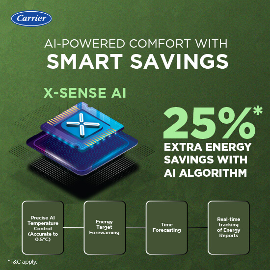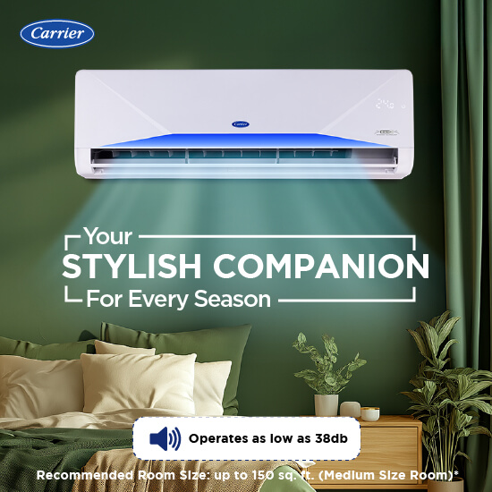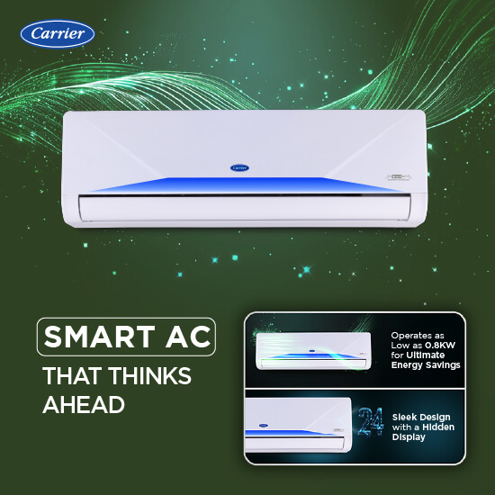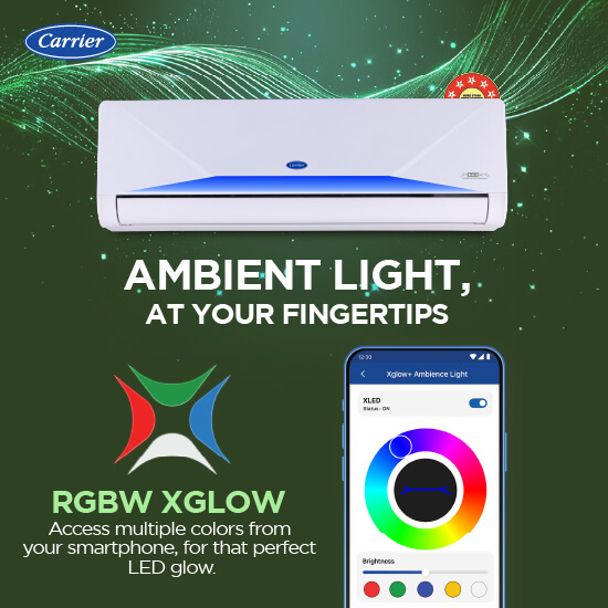 Enhance your cooling experience with the Xceed LUMO Gxi (Wi-Fi) RGBW, a next-generation air conditioner that combines smart connectivity, high-performance cooling and superior energy efficiency. With the help of X-Sense AI, this AC automatically adjust the cooling and temperature based on your habits and surrounding conditions. Designed for seamless control and optimal comfort, it delivers powerful airflow while maintaining a balance between performance and power savings. It offers multiple Ambient Lighting color options through Carrier Smart Connect 2.0 app and Red, Green, Blue and White Ambient light with remote. Available in 1T, 1.5T and 2T variants.