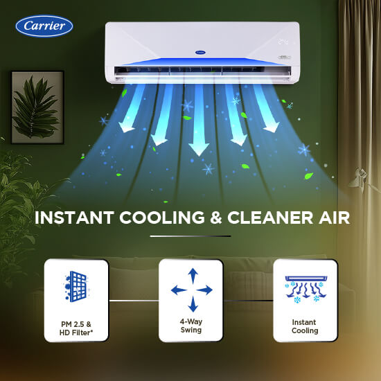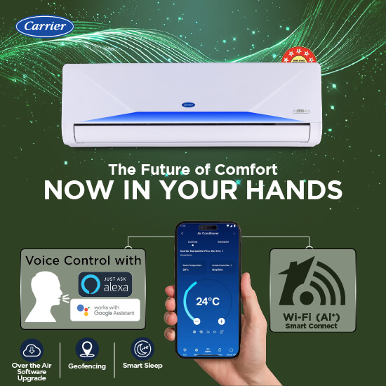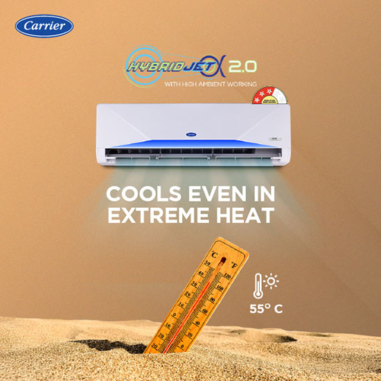 The cutting-edge HybridJet 2.0 technology in Carrier AC not only keeps you cool, but itself too. Using air only for PCB and Compressor both, Carrier’s HybridJet 2.0 technology keeps the outdoor E-box, compressor and PCB controller cool, no matter how hot it gets outside.