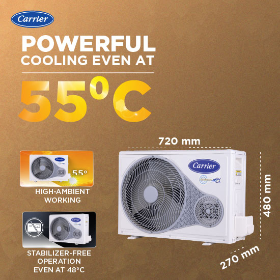 This AC is designed to keep you cool even in high temperatures like 55°C with High Ambient Working technology. With FlexiCool, it adjusts cooling levels to suit your needs while saving energy. The smart Auto Cleanser prevents dust and mold buildup, while the Hydro Blue Coating enhances durability and protects the coils from corrosion for long-lasting performance.