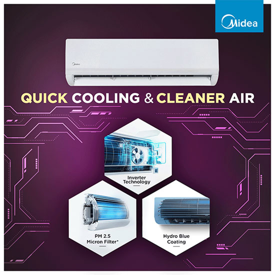 Keep your home fresh, comfortable, and connected with the Midea SANTIS MAX DLX Wi-Fi. The PM 2.5 filter ensures clean air, Wi-Fi 1.0 provides remote control convenience, and 6 cooling modes allow tailored comfort. Built to last with Prime Guard Hydro Blue Fin Coating, it delivers reliable cooling and energy-efficient performance. Ideal for a modern connected home where comfort meets technology.