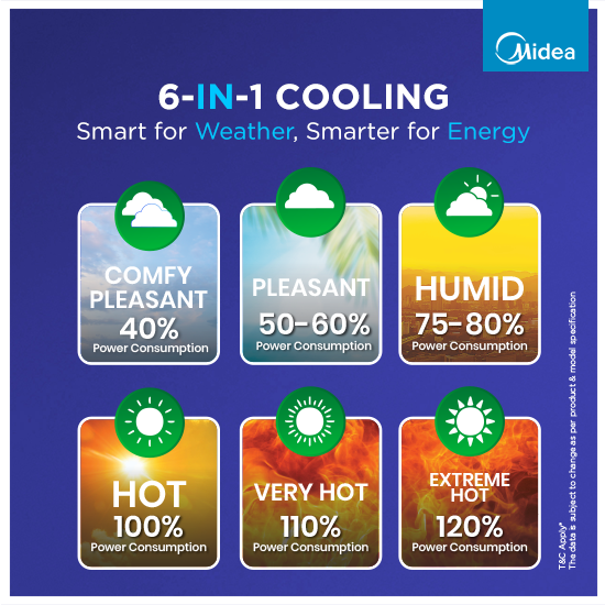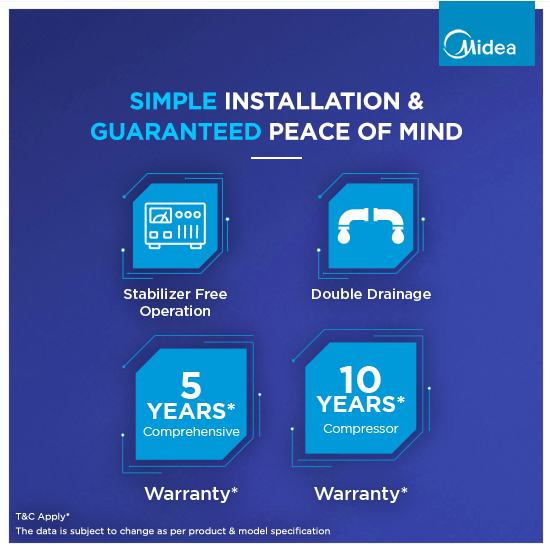 *All specifications as per IS1391 (Part 2) : 1992 Room air-conditioner. Rounded off as per IS 2:1960 rules for rounding off numerical values.