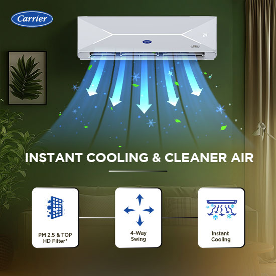 This AC unit ensures consistent cooling with smart connectivity, allowing users to control and monitor settings remotely. It adapts cooling modes to optimize energy savings while maintaining superior performance. Its advanced design adapts to high ambient temperatures to ensure consistent airflow and rapid cooling. Its multidimensional air circulation enhances comfort by eliminating hot spots and evenly distributing cool air throughout the space.